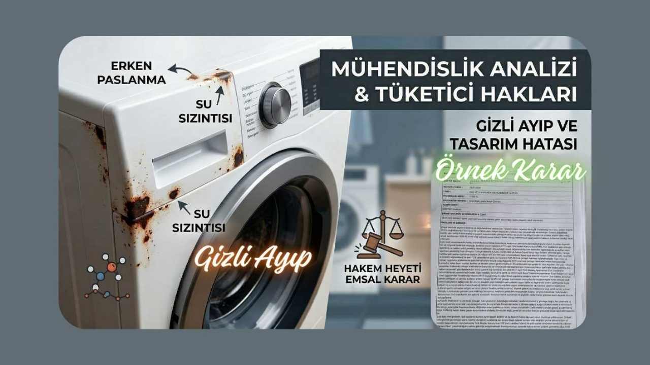 - Gizli Ayıp ve Tasarım Hatası: Paslanmanın dışarıdan değil, makinenin iç aksamındaki havalandırma boşluklarından sızan sudan kaynaklandığı, bunun bir “tasarım hatası” olduğu ve dolayısıyla “gizli ayıp” niteliği taşıdığı belirtilmiştir. Kararda, deterjan kutusu bölgesindeki su sızmasının iç duvardan aşağı süzüldüğü ve korozyonu tetiklediği tespit edilmiştir.