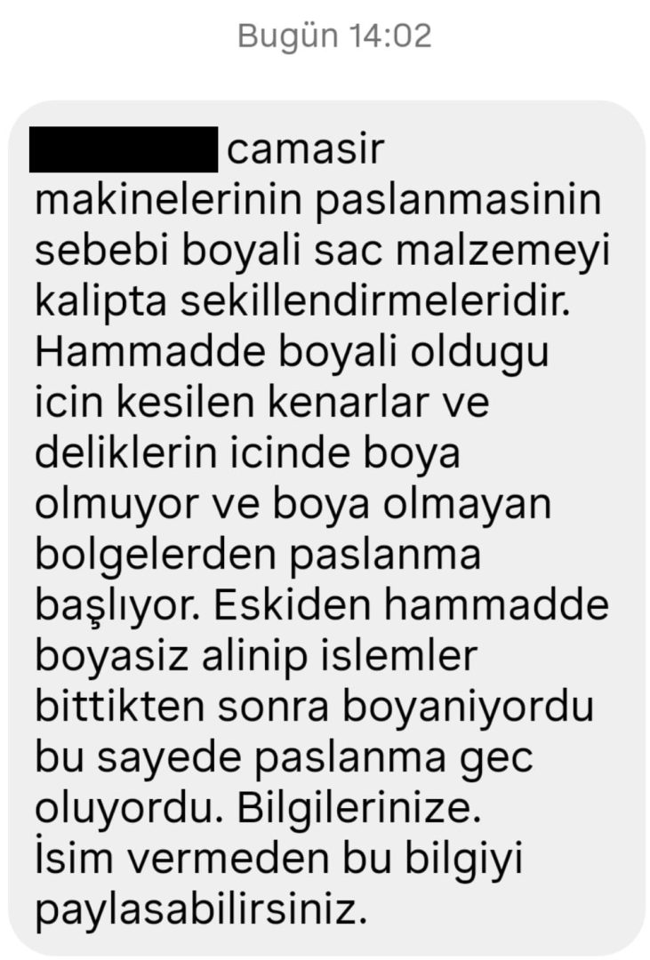- Yeni makinenizde paslanma sorunu yaşadınız mı?