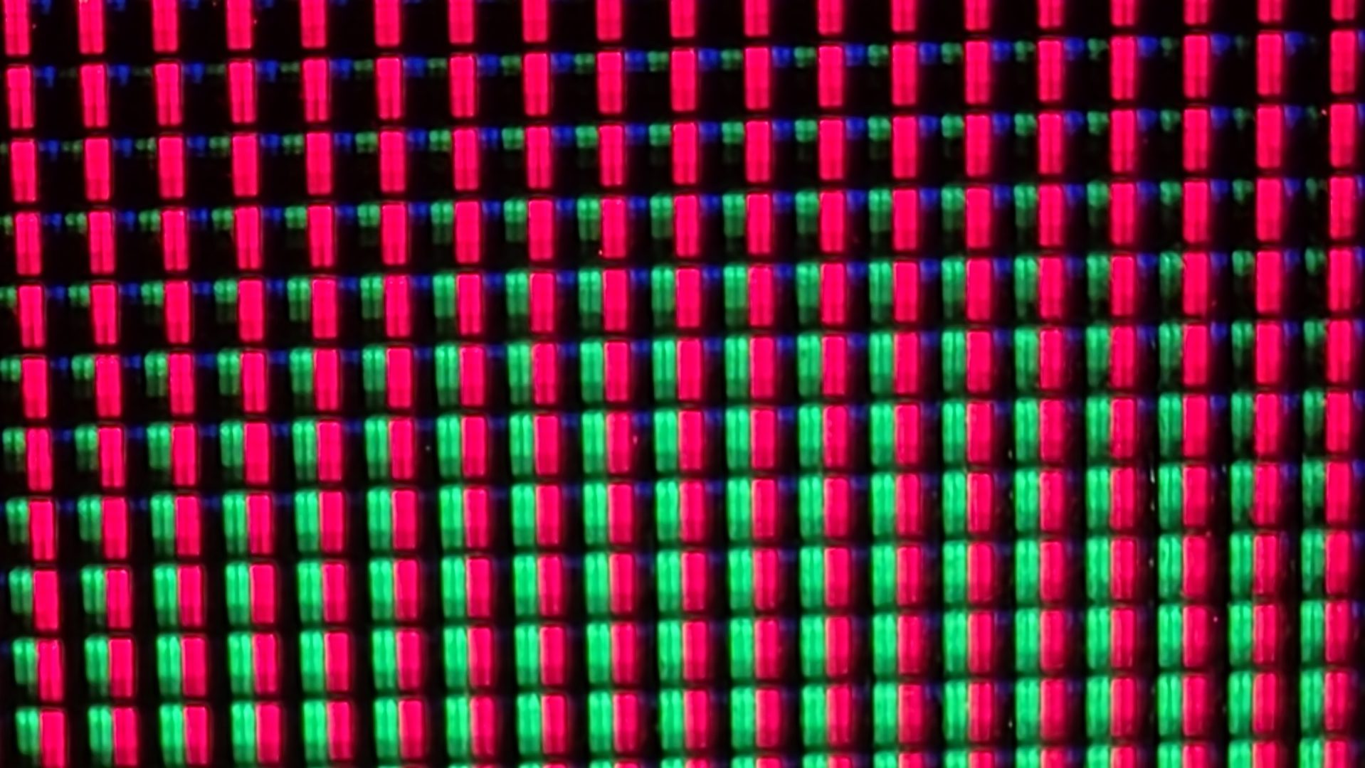 Aağıdaki görselde aslında, 75” bir ekrandaki kırmızı gül görselinin bir yaprağındaki su zerreciğinde oluşan sarımsı noktanın üst yuvarlak kısmının pixellerini ve alt pixellerini görüyorsunuz. İşte size HVA bir panelin görüntüsünü oluşturan kristallerin dizilim şekli.
