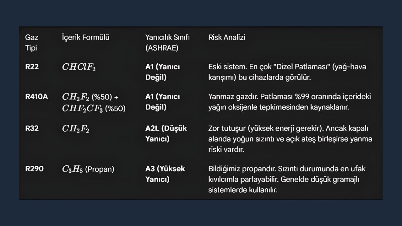 - Yanma bazlı patlamalar (flammable refrigerant sızıntısı + ateşleme kaynağı).