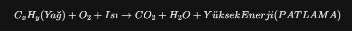 - Diesel benzeri patlamalar (non-flammable gazlarda bile hava karışımıyla).