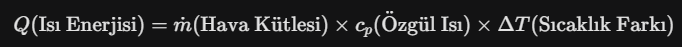 - Yüksek Fan: Delta T biraz daha düşük (14.7° derece fark), ancak hava miktarı çok yüksek (Düşük fanın 1.5-2 katı). Sonuç: Çok daha yüksek toplam ısı transferi.