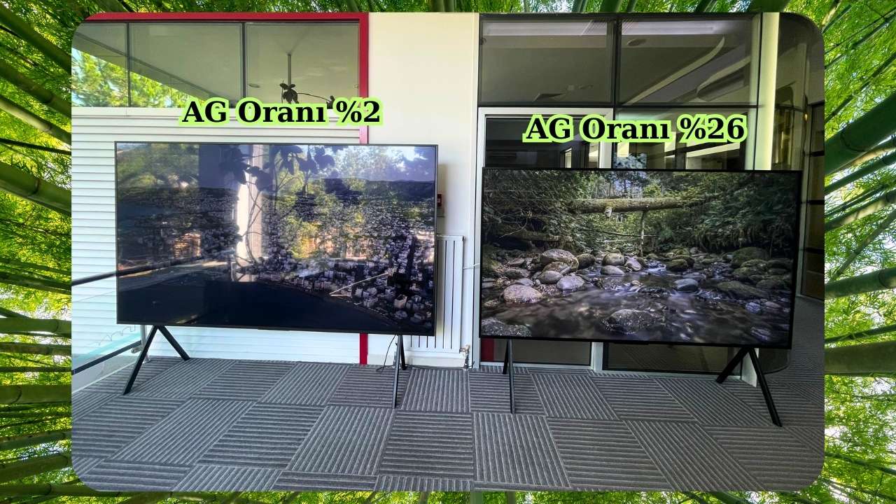 - Durum böyle olunca çok fazla AG katmanlı daha doğrusu oranı yüksek kaplamalı ürünleri satışlarda göremiyorsıunuz. Bütçe TV’lerde basit mat kaplama yaygındır ki o da %1 ile 3 arasında değişir, üst segmentlerde “low-haze” veya “glare-free” (Samsung S95 serisi gibi) daha ince/akıllı kaplamalar var – bunlar maliyeti yükseltse de görüntü kaybını minimize eder. (Olduğu kadar)
